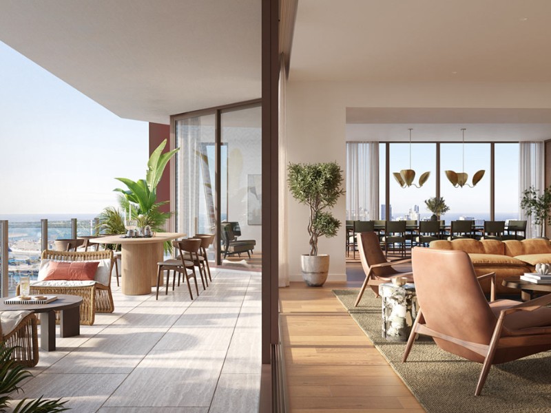 Los residentes pueden elegir entre semi-pisos de tres dormitorios con vistas de 180 grados o pisos completos de cuatro y cinco dormitorios con impresionantes vistas panorámicas de 360 grados. Con techos de 10 y 11 pies de altura y balcones profundos, la sensación de amplitud y conexión con el entorno es palpable